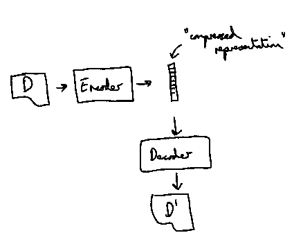 In more advanced video and audio coding, a similar framework is used, but here an aim is to throwaway bits of the original data that may not be used or noticed by human beings. In this case, the output data is meant to be the original data, but may be a little dog-eared and soggy (think about those blocky pixels or muted ranges).