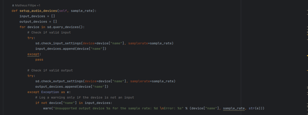 I had issues getting access to the audio device within the GUI (graphical user interface) version. (I was taken back in a Proustian wave of memory – why is it so difficult to record sound with Python?!) But the command line demo worked.