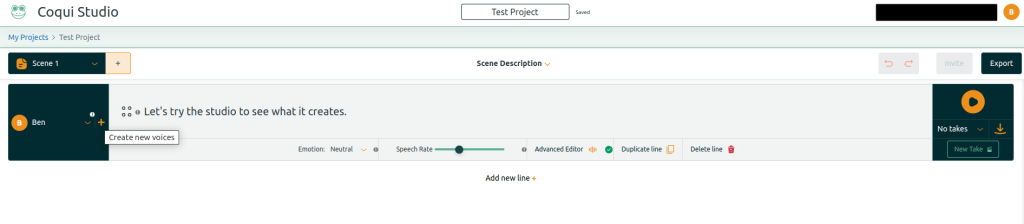You can then type a line and attempt to synthesis speech in that voice: