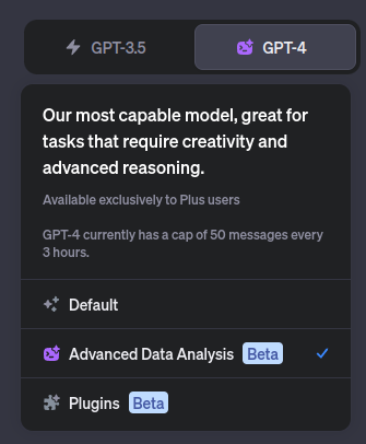 The Advanced Data Analysis option in (paid-for) ChatGPT is a sandboxed code execution environment that allows file uploads and downloads. This means you can run code in the chat. This is very useful for data analysis. You can run common scikit learn code and display the results using matplotlib. You can select the Advanced Data Analysis mode when selecting the model at the top of a new chat: