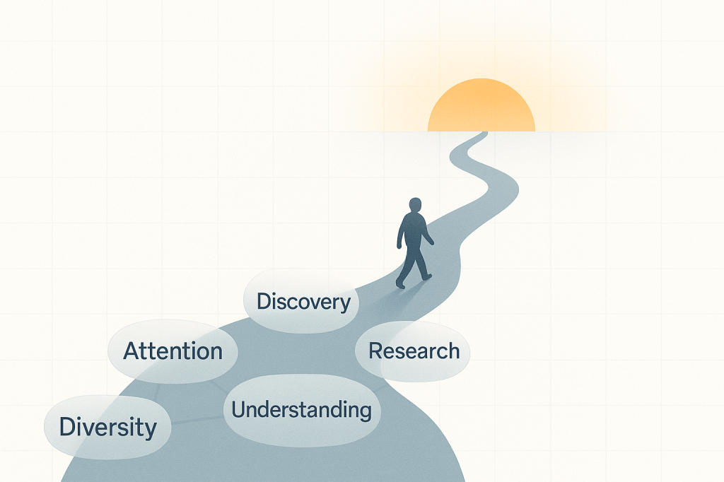 This exploratory approach to creativity appears in many of my journal entries, where I often start with a feeling or question and let the writing process itself reveal connections and insights. For example, in one journal entry I began with vague concerns about productivity and meaning, then used the writing process itself to clarify and structure these thoughts. What I thought at first was a writing technique I’m slowly beginning to realise is actually how my aphantasic mind naturally works. Know thyself is actually pretty challenging if it turns out your inner experience might be quite different from the majority!