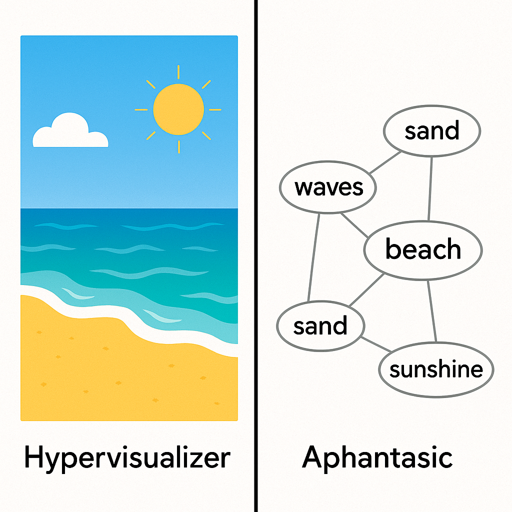 Aphantasia is the inability to voluntarily create mental images in one’s mind. While most people can “see” a beach when they close their eyes and imagine one, I can’t. And it’s not just visual imagery – for me, it extends to all sensory modalities. This makes those annoying new-age “walking on a beach” meditations really boring for me!