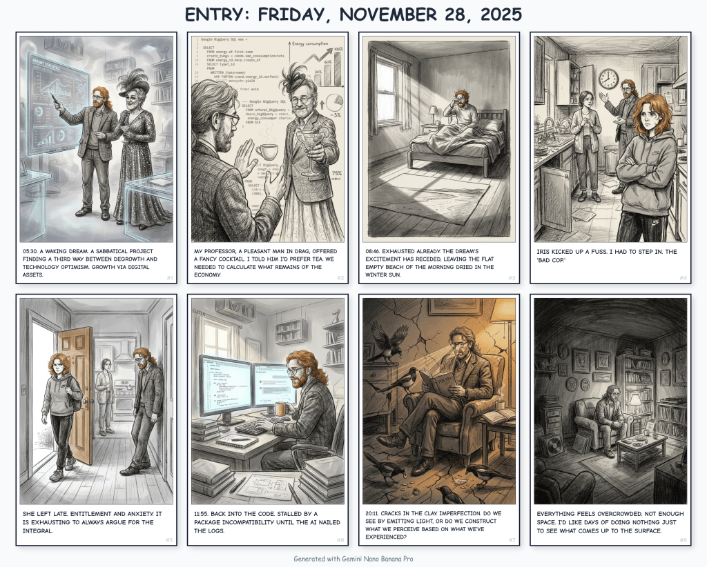 This is a cool project. I journal using www.750words.com. I was hearing about the abilities of the Gemini 3 Image model (“Nano Banana Pro”). So I wondered the above question. This was the answer.