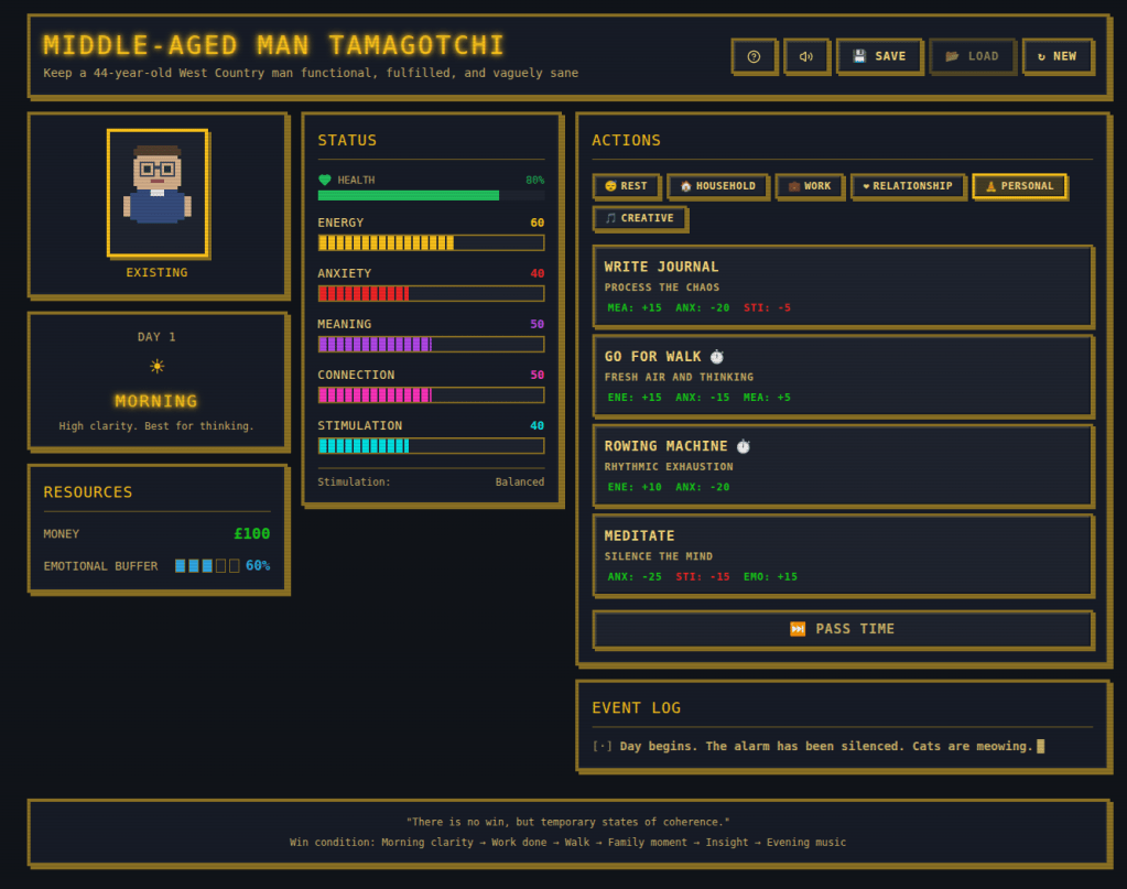Keep a 4x-year-old West Country man functional, fulfilled, and vaguely sane