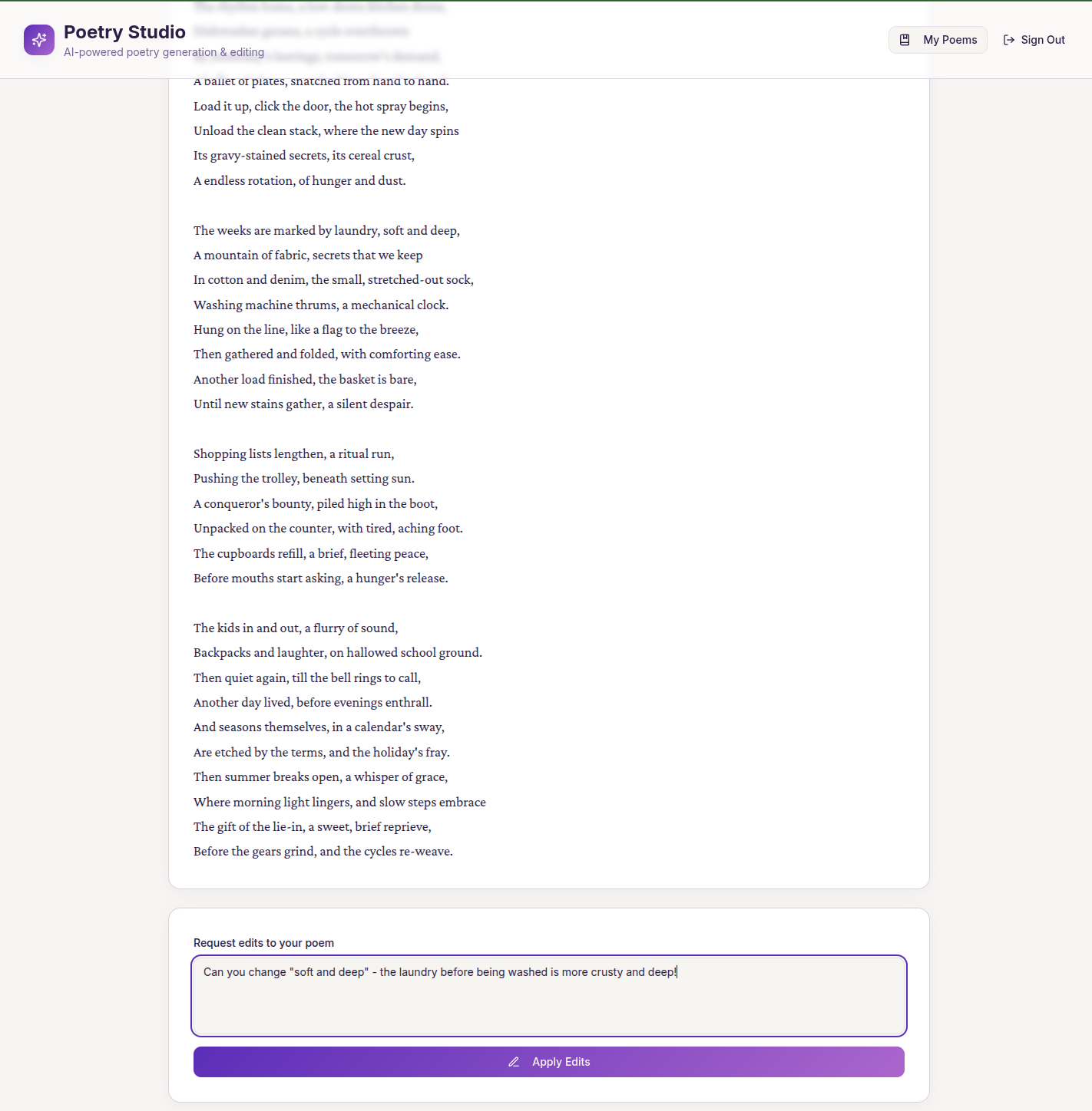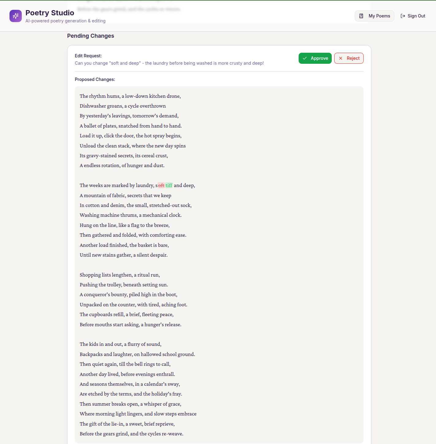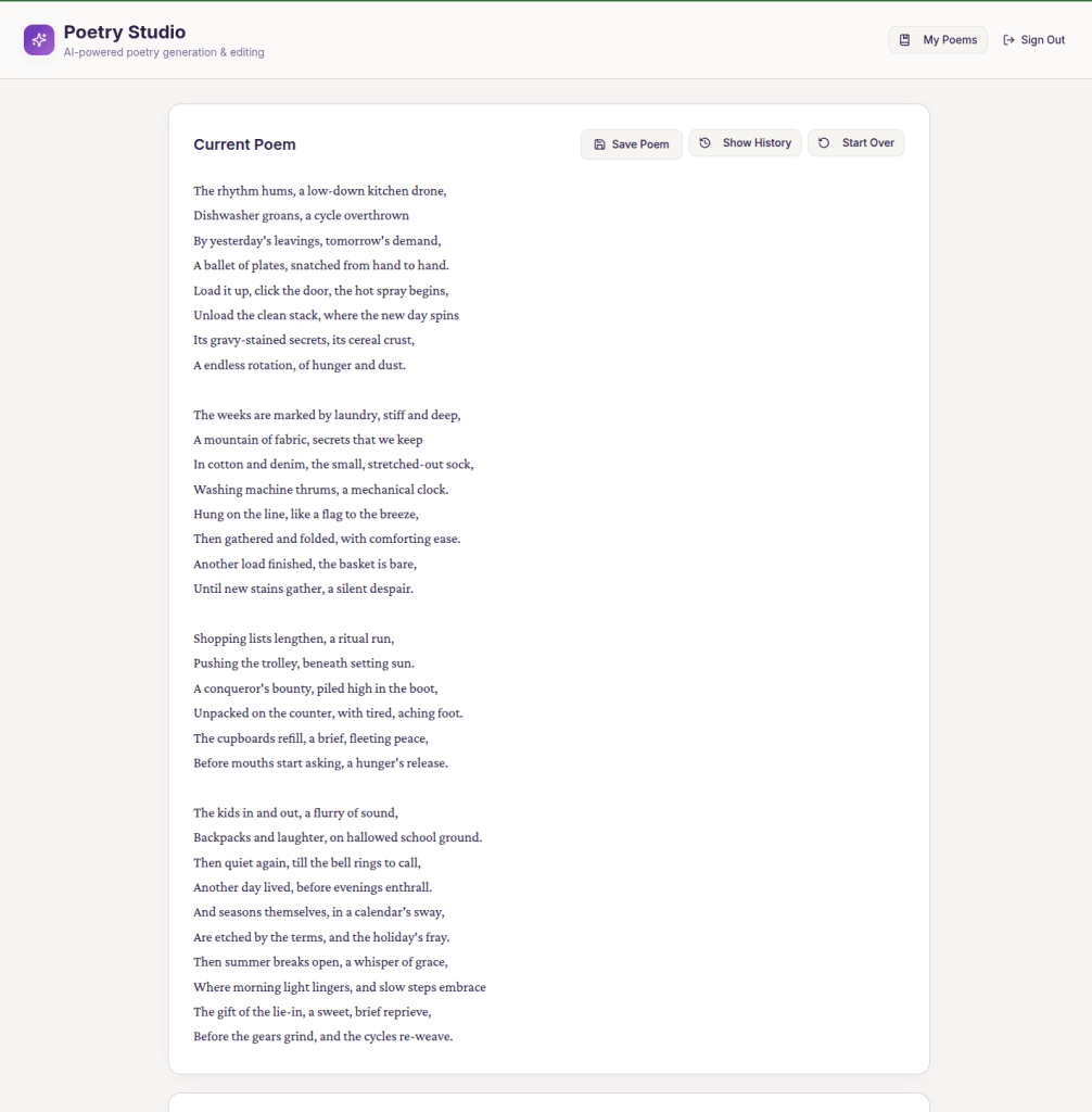 I like the thought of writing poems based on random snippets of ideas. This plays with that and also explores Lovable’s abilities. It also experiments with track changes LLM revisions.