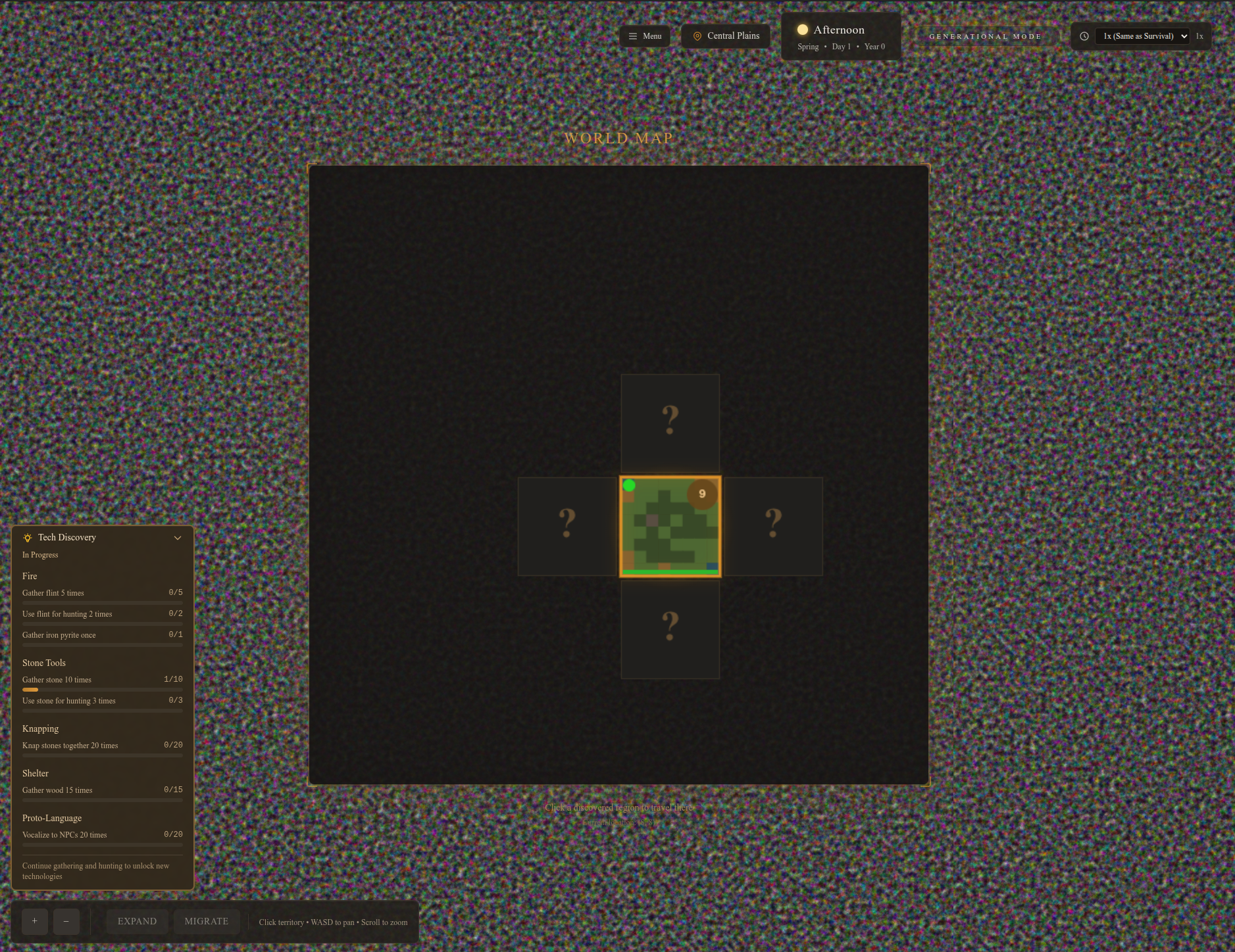 I had an idea to build a game to understand the experience of deep time. 6 million years ago to about 6000 years ago. This is the result. It’s teaching me about game dynamics and refactoring design choices.