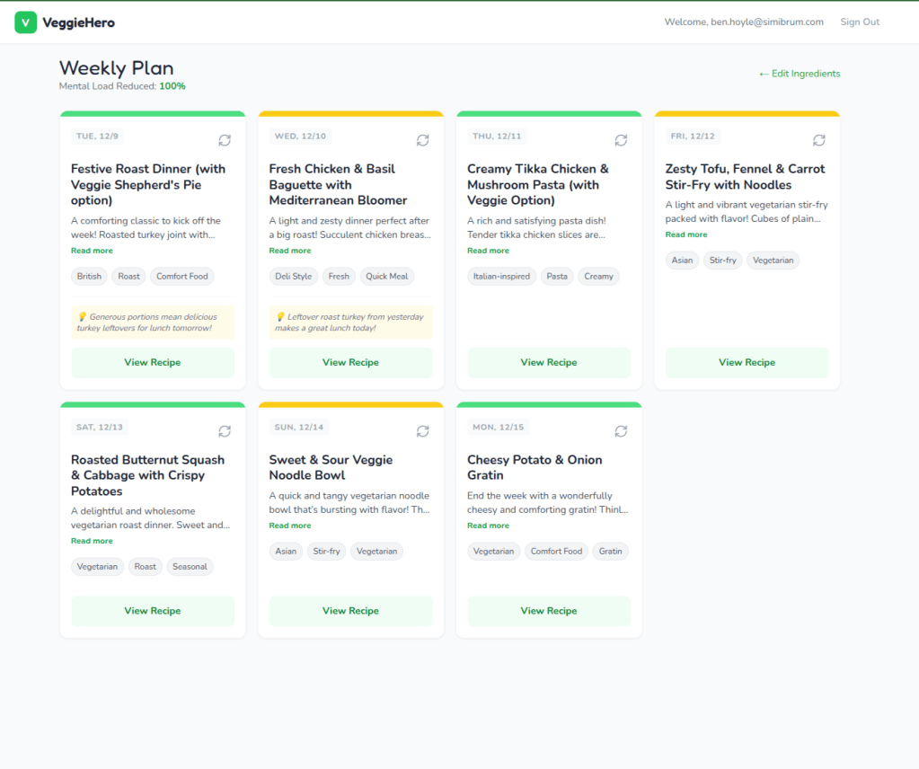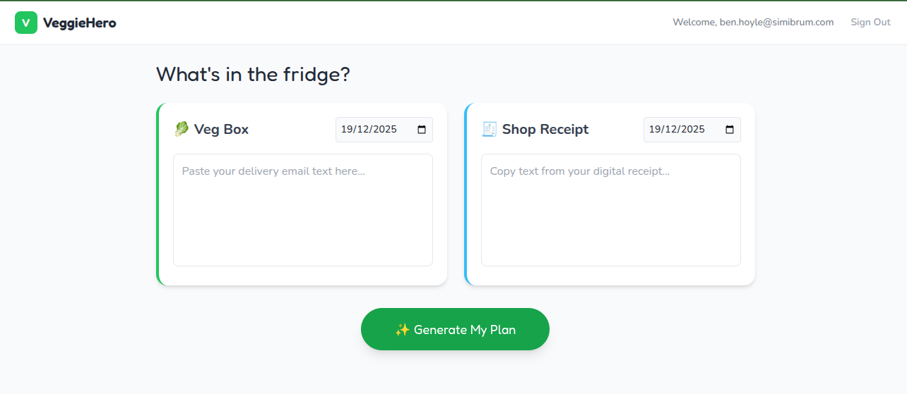 Can I build a weekly meal plan from my veg-box email and my Lidl receipt?