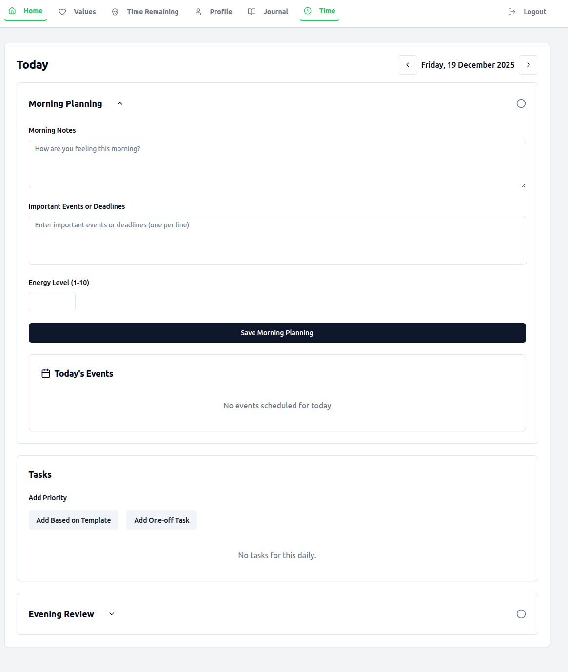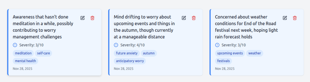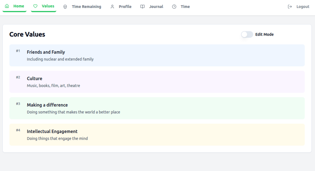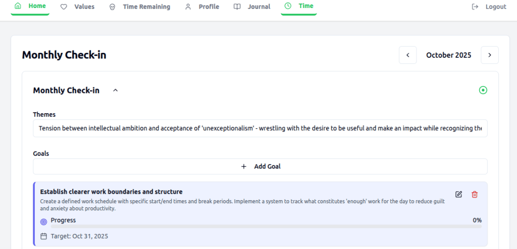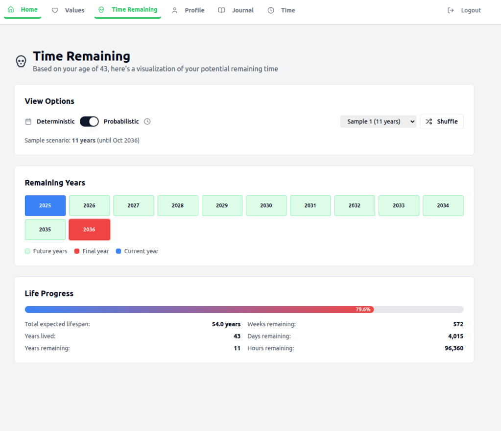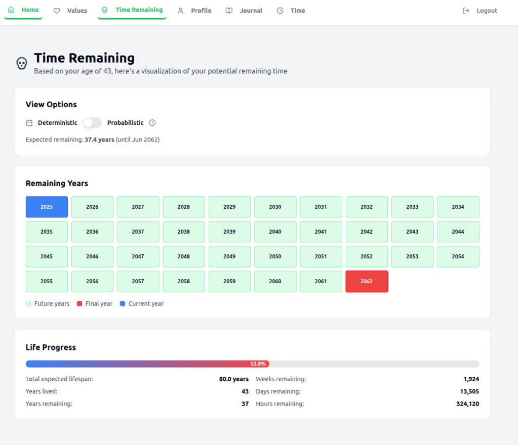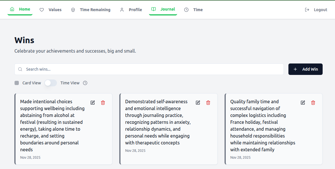 This is an older project, started over a year ago before modern faster “vibe-coding” approaches. The idea was to have something that complemented the journalling to help me live “better”. Things like noting worries and challenges, together with wins and goals. Recently I updated with some automated review of my journal entries – to auto add the notes using LLMs from raw text. Also has a probabilistic “death” calculator.